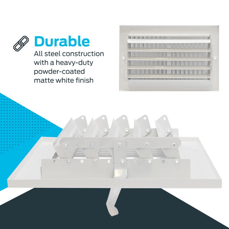 - DURABLE: Two-way air registers feature all steel construction with a heavy-duty powder-coated matte white finish to add a contemporary touch to your home decor and withstand heat and cold without warping