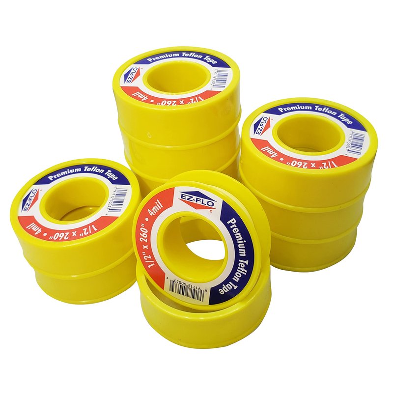 EZ-FLO Gas Teflon Tape, Premium Pipe Thread Tape, 1/2-Inch x 260-Inches x 4 mil, Yellow (10 Pack)