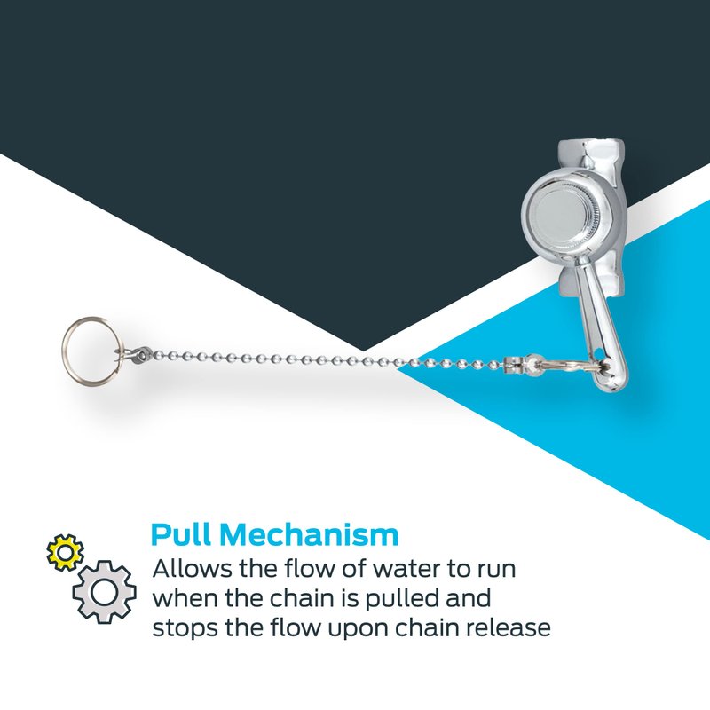 - FUNCTIONALITY: The stainless steel chain features a pull mechanism which allows the flow of water to run when the chain is pulled, and stops the flow upon chain release