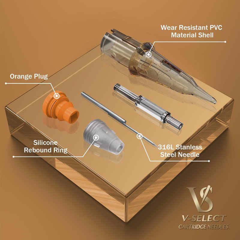 - 【Safety and Sterilized】V-SELECT cartridges needles used light clear color tips shell, better visibility.Needle is made of surgical stainless steel, 100% EO gas sterilized and Individually packaged. Low profile housing & better ink flow & shaped on the inside,Smooth edges eliminate additional trauma.
