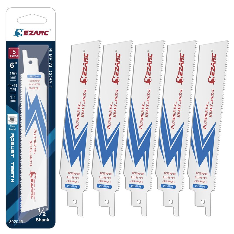 EZARC Reciprocating Saw Blade, 6-Inch Bi-Metal Sawzall Blades 14/18TPI for Steel Demolition R610DM (5-Pack)