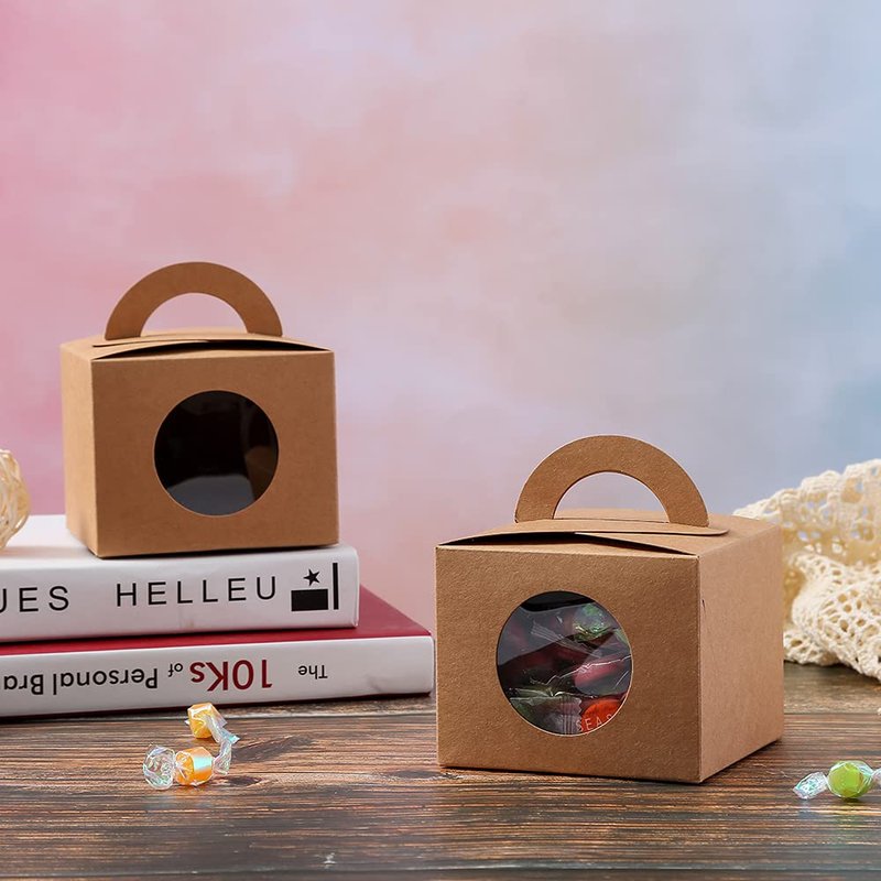 ezek Colored Gift Boxes With Window and Handle, Picnic Wedding Birthday Valentine Party, packs of 12