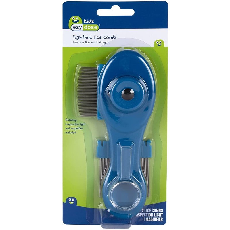 EZY DOSE Kids Lice and Eggs Comb, Hair Care for Baby, Toddler, Adult, Includes Light, Magnifying Glass, Stainless Steel Pin Teeth, Blue, 3.3 Oz, BPA Free