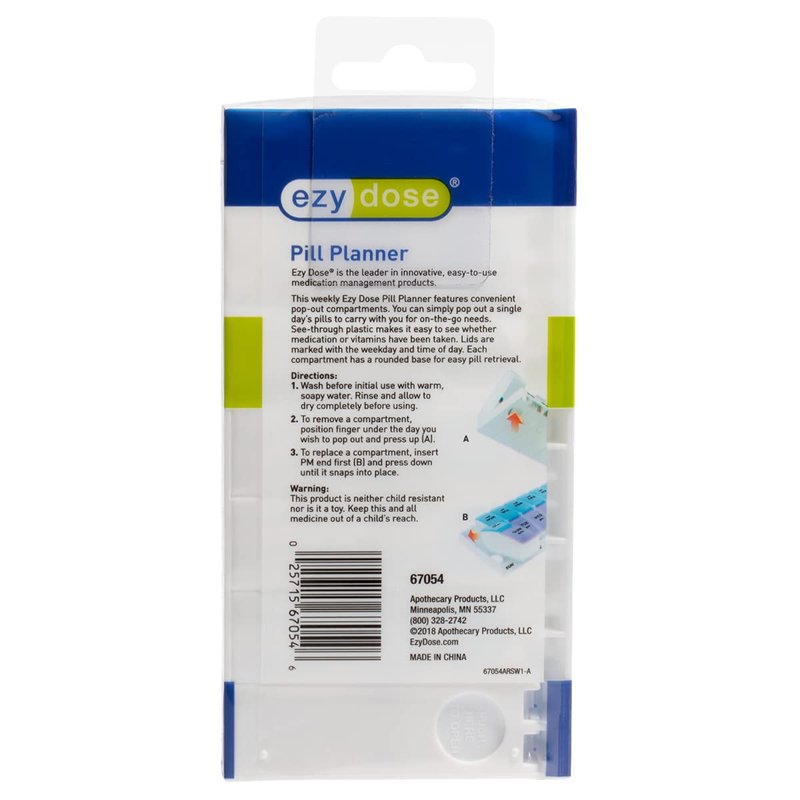 Ezy Dose Weekly (7-Day) AM/PM Pill Organizer, Vitamin and Medicine Box, Small Pop-out Compartments, 2 Times a Day, Blue and Purple Lids
