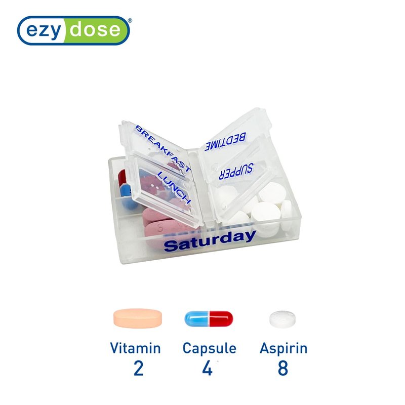 EZY DOSE Weekly (7-Day) Pill Organizer, Vitamin and Medicine Box, Pop-Out Compartments, 4 Times a Day, Clear Lids