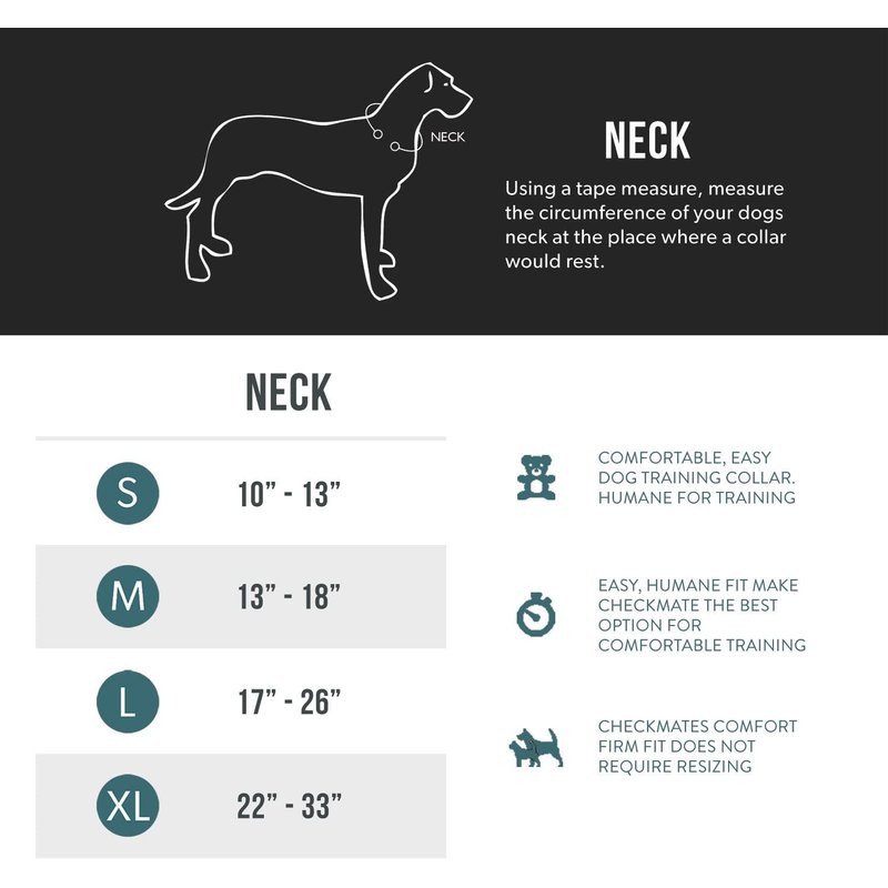 - CHECKMATE COLLARS REQUIRE NO RESIZING: Unlike traditional Martingale collars, our Checkmate collars are easy to fit and do not require re-sizing for each fitting and our easy-to-use quick-clip buckles provide fast on and off.