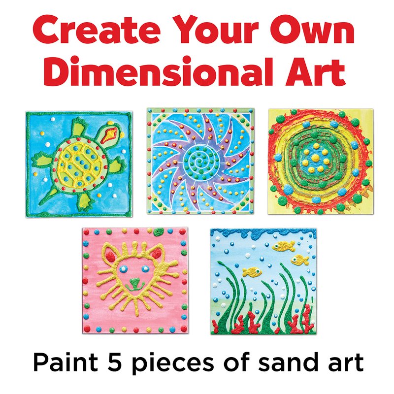 - CREATE DIY SAND ART: Bring 5 fun sand paintings to life using watercolors, sand paint, texture tools, and more! This creative, screen-free kids activity is the ultimate art project. Use the colored sand squeeze tube paint colors from this painting kit to design a one of a kind mixed-media art masterpieces. It's so easy to create fun textured works of art!
