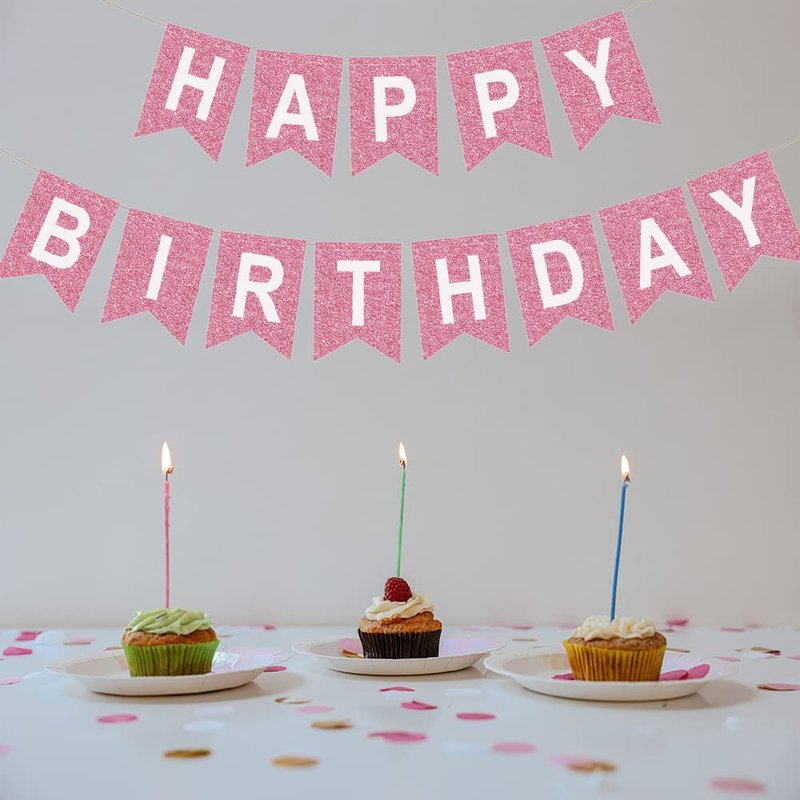 - Our pink happy birthday sign is made of thicken glitter fabric, sturdy and reusable, durable to use for another birthday party decorations again and again.
