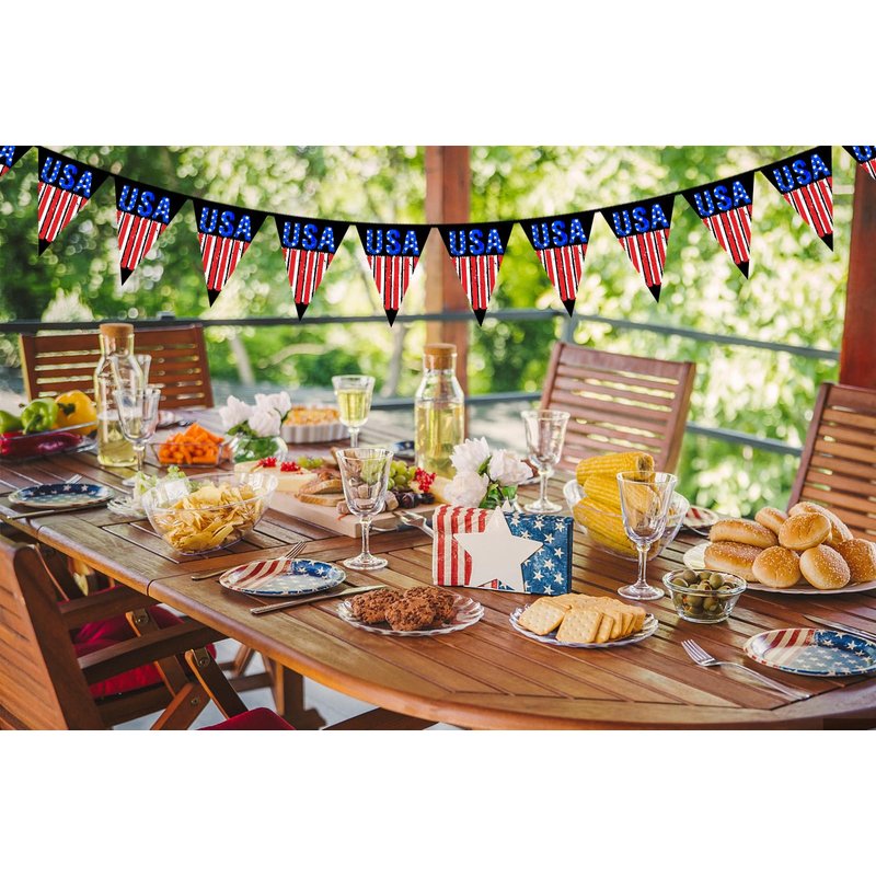 Fabric Pennant Banner for Independence Day, Happy 4th of July American Flag Banner, Patriotic Party Decorations and Supplies, Patriotic USA Bunting Banner