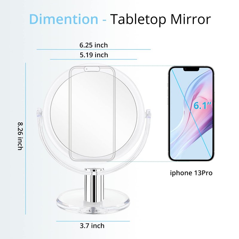 - ELEGANT MAKEUP MIRROR - This two sided tabletop makeup mirror looks extremely elegant and has a beautiful glossy finish, the transparent appearance makes this magnifying mirror a great addition to the decor of a bedroom, bathroom, or office