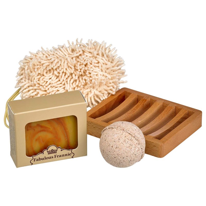 Fabulous Frannie All Natural Patchouli Gift Basket includes 4oz Soap, 2.75 Bath Bomb, Soap Dish, and Soap Sponge