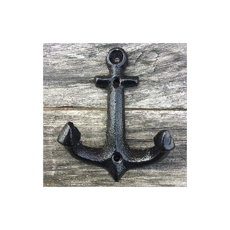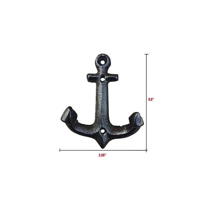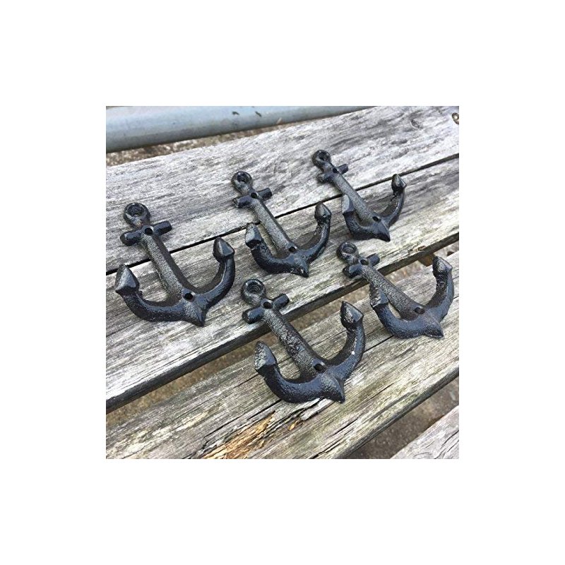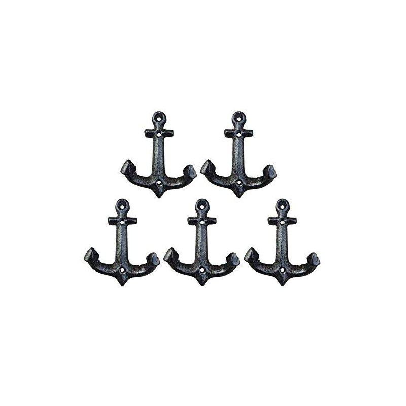 Facaler Nautical Cast Iron Ship Anchor Weathered Nautical Wall Hooks Coat Hook, Screws Included (5 PCS)