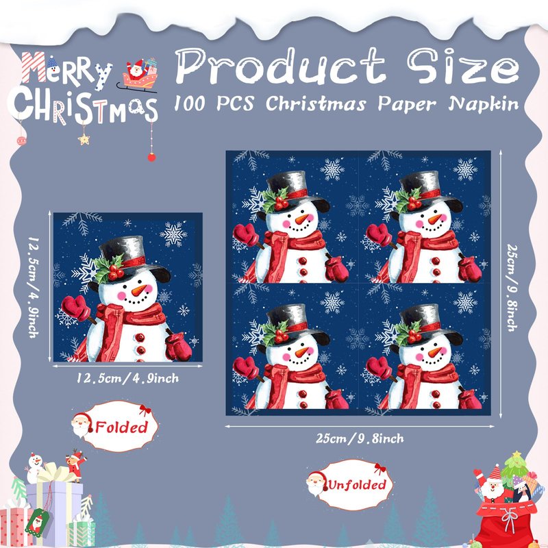 - Proper Size: the Christmas lunch napkins measure approx. 12.5 x 12.5 cm/ 4.9 x 4.9 inches folded, and about 9.8 x 9.8 inch/ 25 x 25 cm unfolded; The suitable size make these Xmas party paper napkins portable and easy to store and will not occupy too much space