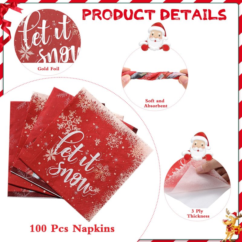 - Reliable Quality: the Christmas beverage napkins are made of quality original wood pulp with clear print, and each napkin is 3 plies, thick, soft, absorbent and not easy to fade or wear to ensure a comfortable dining experience