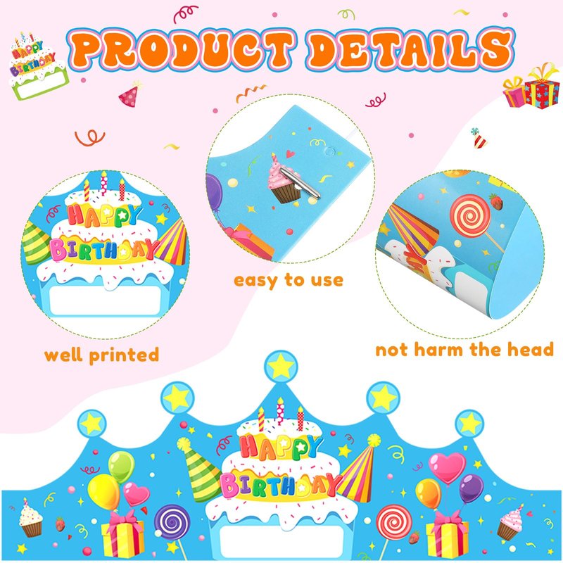- Birthday Paper Caps for Boys Girls: The package includes a set of 36 cute and vibrantly designed birthday crowns. The creative designs and bright colors make these crowns an instant hit among boys and girls. Students of all ages can have their pick from the friendly, fun motifs included in the set.