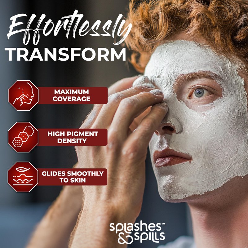 - KIND TO SKIN: At Splashes & Spills we are committed to making products that are as comfortable & safe to use as they are fun, that's why our face & body paint is gentle on the skin.