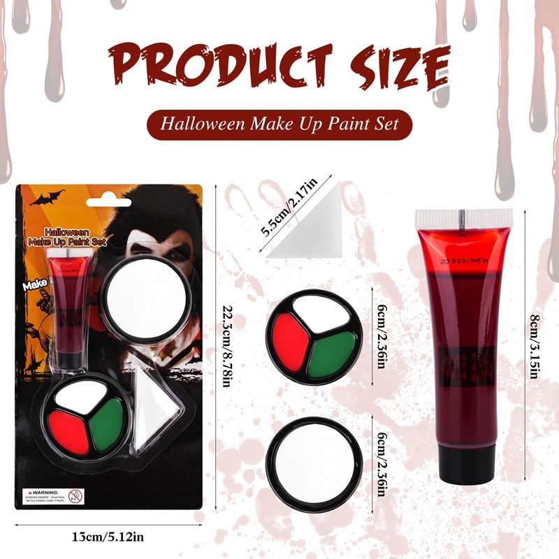 Face Body Paint Set, Halloween Cosplay SFX Makeup Black White Green Cream + Washable Fake Blood: