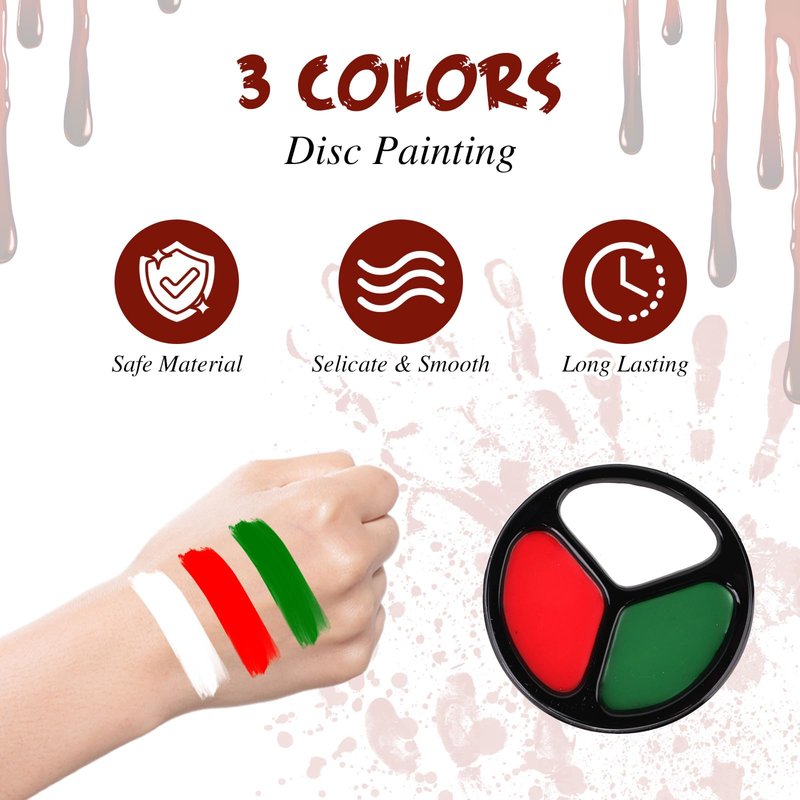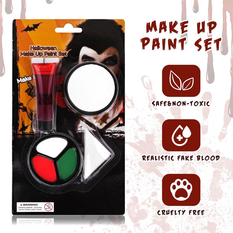 - ✔ Halloween Cosplay SFX Makeup Black White Green Cream + Washable Fake Blood: Classic black white green face and body paint set can be used on face and body. Applications for Fun Themed Party, Carnivals, Fancy ball, Halloween and other occasions.