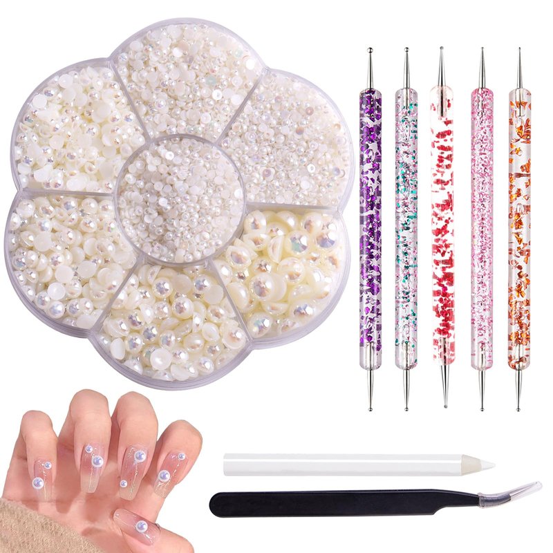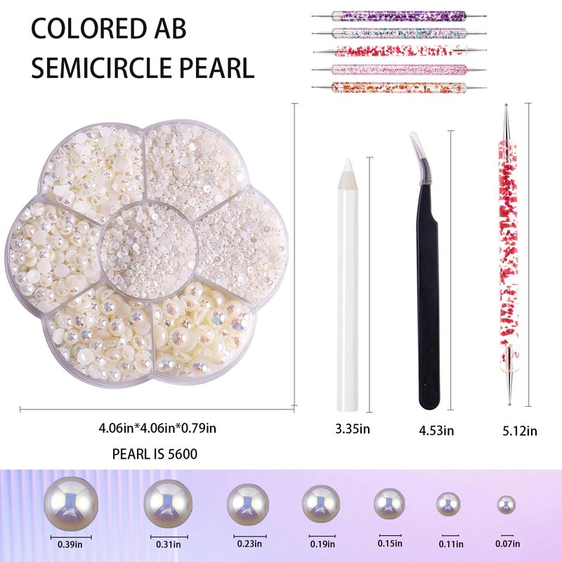 Nail Pearls - Enhance Your Nail Art and Crafts! Are you looking for the perfect addition to elevate your nail art and craft designs? Look no further! Introducing SAOTAENG Nail Pearls, the ultimate accessory to add a touch of elegance and charm to your creations. With a range of sizes available, from 2mm to 10mm, this nail kit includes a whopping 5600 PCS of pearl beads, ensuring you have plenty to work with for all your projects. Whether you're a DIY enthusiast, a nail artist, or simply love crafting, SAOTAENG Nail Pearls offer endless creative possibilities. These flat back pearls can be easily applied using gem glue and a rhinestone picker dotting pen, making the process effortless and enjoyable. We understand the importance of organization, which is why each box of SAOTAENG Nail Pearls comes with an independent lid, ensuring easy access and convenient storage. Additionally, a pick up pencil and tweezer are included and a double-ended dotting pen, making the application process a breeze. These versatile nail pearls are not limited to nail art alone. They can also be used for face makeup, various crafts, and even as decorative accents for clothes, shoes, and more. Let your creativity run wild and create unique and eye-catching designs that will surely impress. SAOTAENG Nail Pearls offer unparalleled quality and value. With their exquisite shine and beautiful cutting facets, they are sure to turn heads and add a touch of sophistication to any project. Whether you're a beginner or a seasoned artist, these nail pearls will elevate your creations to the next level. Don't miss out on this incredible opportunity to own a top-notch nail accessory. SAOTAENG Nail Pearls are a must-have for any nail art enthusiast or craft lover. let your imagination shine with these dazzling pearls!