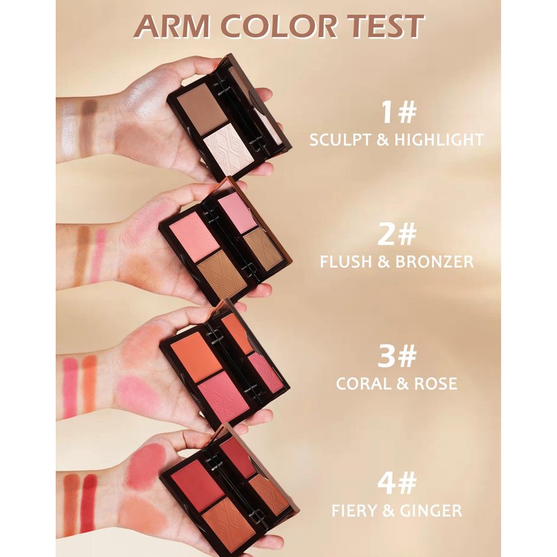 - 2 IN 1 FACE MAKEUP PALATTE SET - There are 4 kits to choose, include contour & highlighter, contour & blush and 2colors blush. This highlighter, bronzer and blush combo instantly sculpts, defines, and highlights in one sweep. Each duo has two levels of intensity for color that compliments every skin tone.