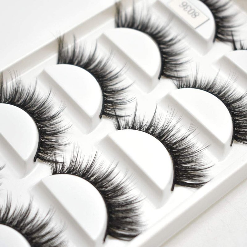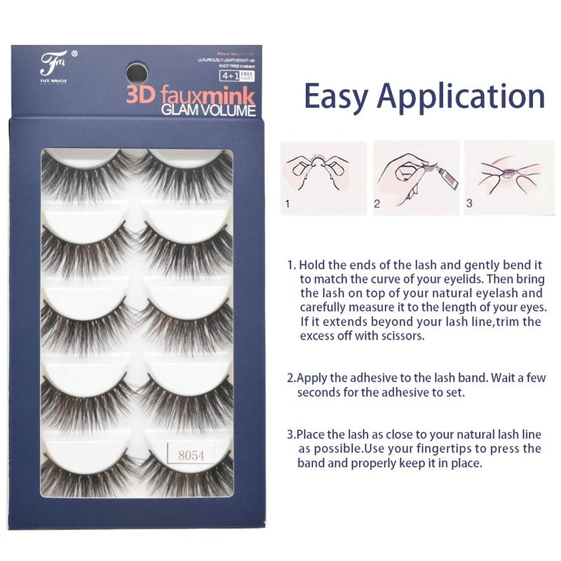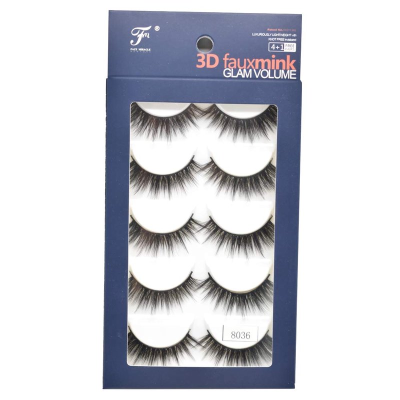 FACE MIRACLE NEW YORK 3D Mink False Eyelashes Full Strip Natural Wispy Fluffy Fake Lashes For Women Thick Cross Long Volume Eyelash Extensions 5 Pairs USA (8036)