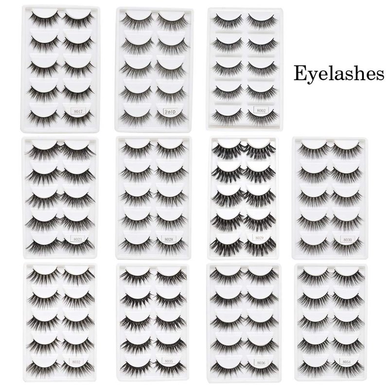 FACE MIRACLE NEW YORK 3D Mink False Eyelashes Full Strip Natural Wispy Fluffy Fake Lashes For Women Thick Cross Long Volume Eyelash Extensions 5 Pairs USA(8029)