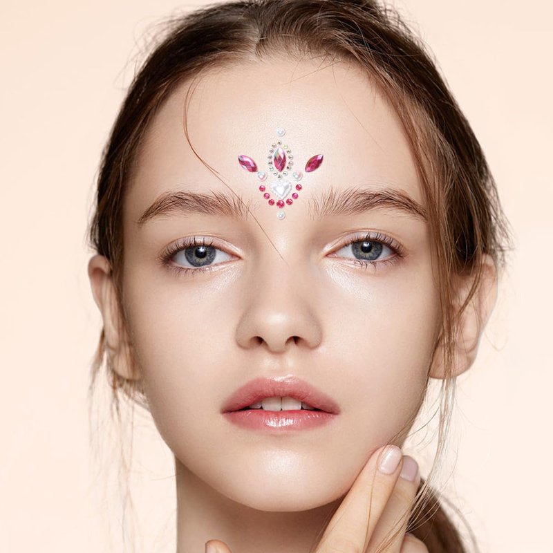 - Each set include 4 patterns 3D face jewels.You could use directly and put them on your forhead.