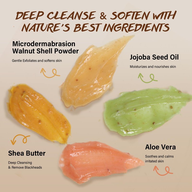 - Green Tea & Salicylic Acid Blackhead Scrub: Enjoy the refreshing cleanse of Green Tea and Salicylic Acid as they work together to purify your skin. The lightweight texture gently removes impurities, while the calming green tea scent transports you to a serene space, balancing and smoothing your skin for a clear, fresh-faced look.