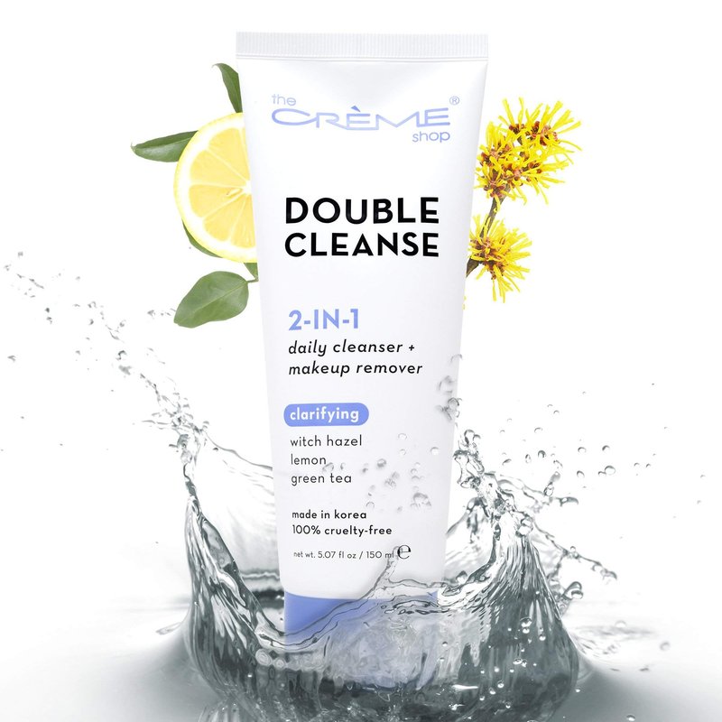 - Face Wash Double Cleanse By The Crème Shop 2 in 1 Facial Foam Cleanser | Witch Hazel + Lemon + Green Tea Daily Cleanser & Makeup Remover.