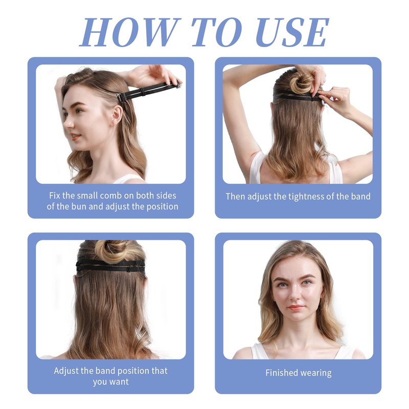 - EASY TO USE: Fix the small comb on both sides of the bun and adjust the position; then adjust the tightness of the band, find the length that suits you.