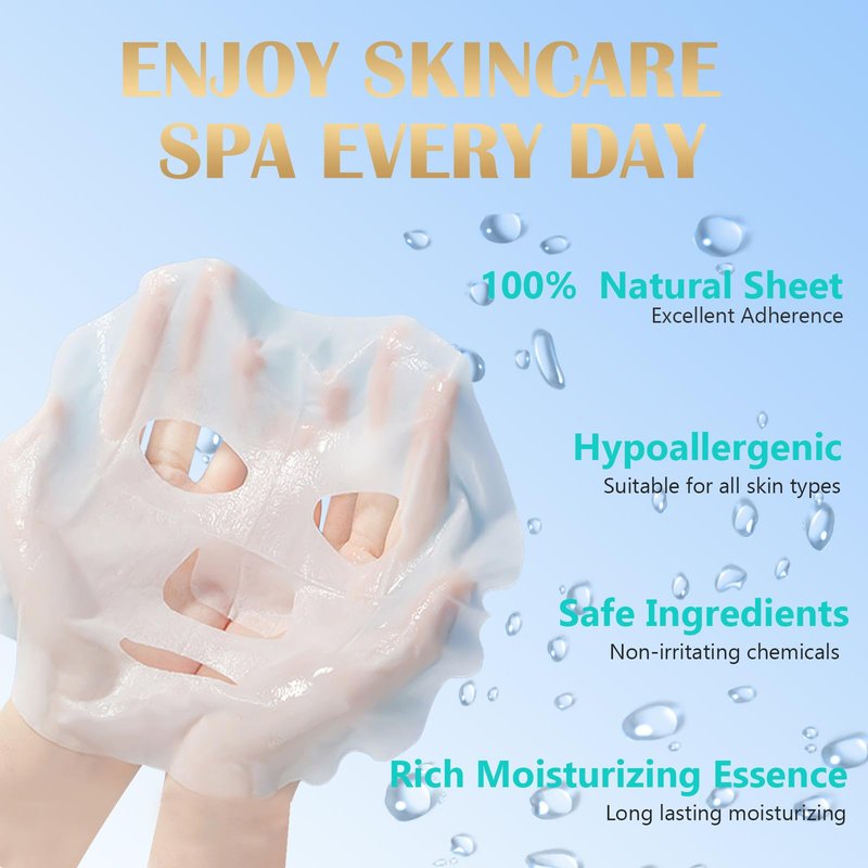 - Soothing & Moisturizing Facial Mask: The main ingredient of the facial masks is derived from the byssus gland of mussels, which can quickly moisturize the skin's surface and penetrate deeply into the skin, locking in the skin's moisture and keeping the skin's hydration and softness for a long time. The face masks skincare also has a soothing and calming effect, can relieve the skin dryness, tightness and other discomforts