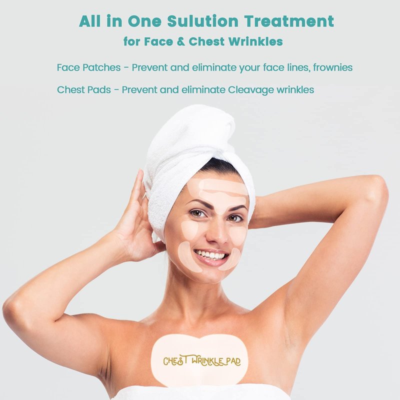 Facial Wrinkle Remover Strips, Upgraded Set of 256pcs Facial Patches + Chest Wrinkle Pad, Face Tape Smoothing Wrinkle Patches for Reducing Forehead Eye and Around Mouth & Upper Lip Wrinkles, All in One Wrinkle Treatment