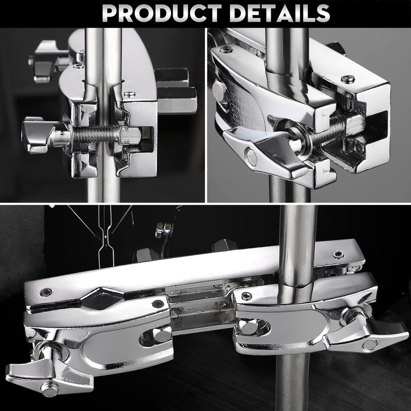 - 【Optimum Security】-- With sturdy, reliable security, this Multi-clamp fastens drums and accessories all around the drum set. Each clamp has a dependable mounting capacity without backing out under high-impact play thanks to the strengthened clamping jaws and T-bolt. It means all you have to do to get the stand to stay precisely where you want to place it, then connect it and tighten it.