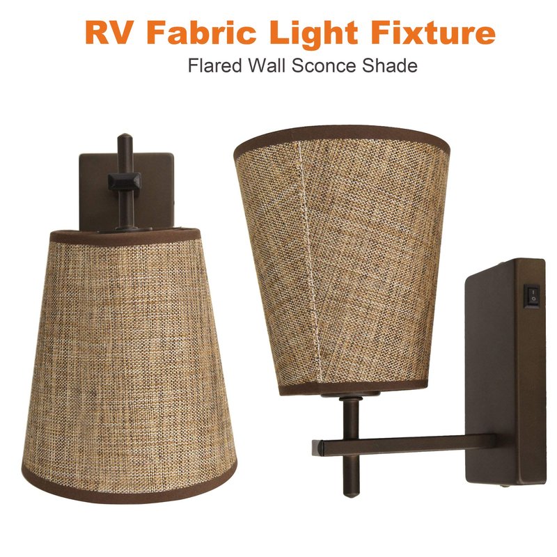 Facon 12V LED RV Wall Sconce with Round Fabric Shape (1 X G4 Replaceable Bulb Included), LED Decor Dinette Lamp with Switch, 12Volts Interior Light for RV Motorhome Camper Trailer