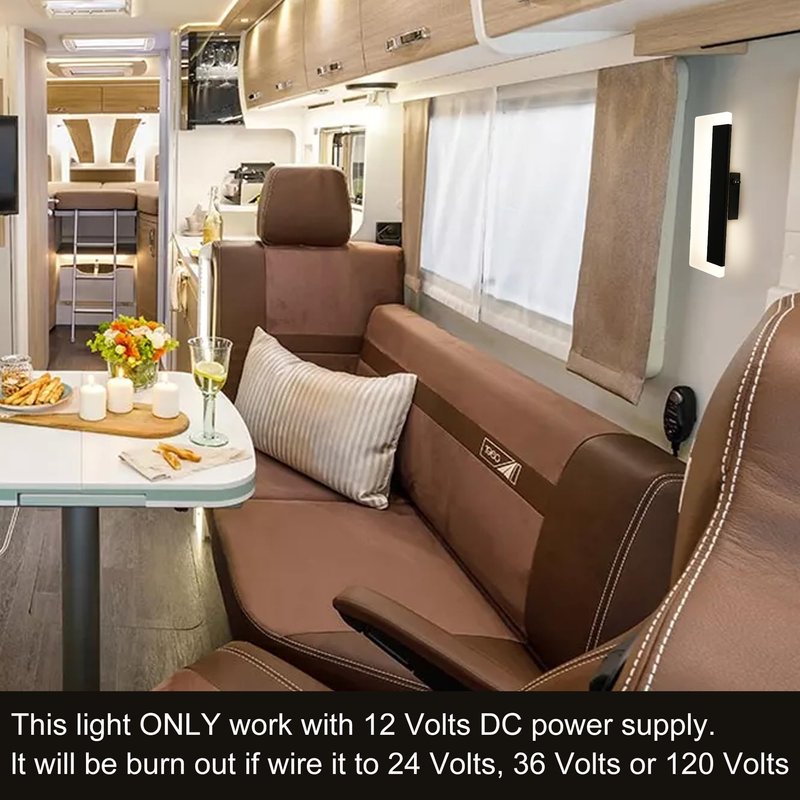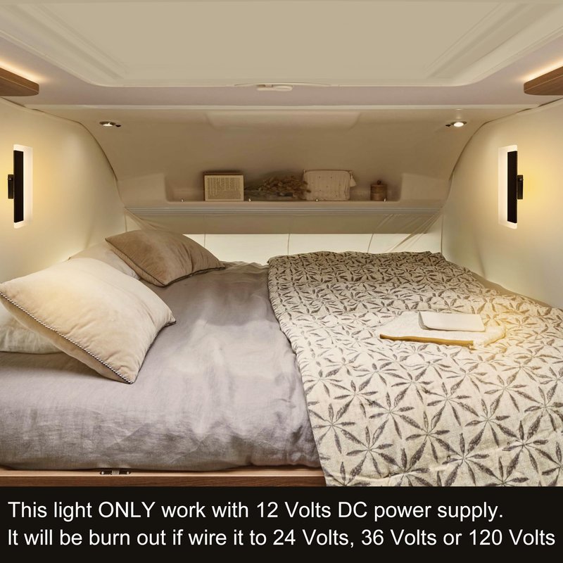 - 【Versatile lighting options】These wall sconces are versatile lighting options that can be used in a variety of spaces, including living rooms, bedrooms, bathrooms, kitchens, dining rooms in your RV, camper, or boat. They provide ample light for reading, working, or relaxing, and can be used as a standalone lighting fixture or as a complement to other lighting sources. Make sure the voltage for your vehicle is 12-24Volts DC.