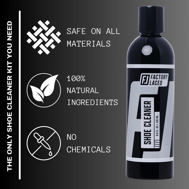 FACTORY LACED Shoe Cleaner Kit - Sneaker Cleaning Kit Includes: Premium 8oz Sneaker Cleaner, Brush and Microfiber Towel - Safe on all Fabrics