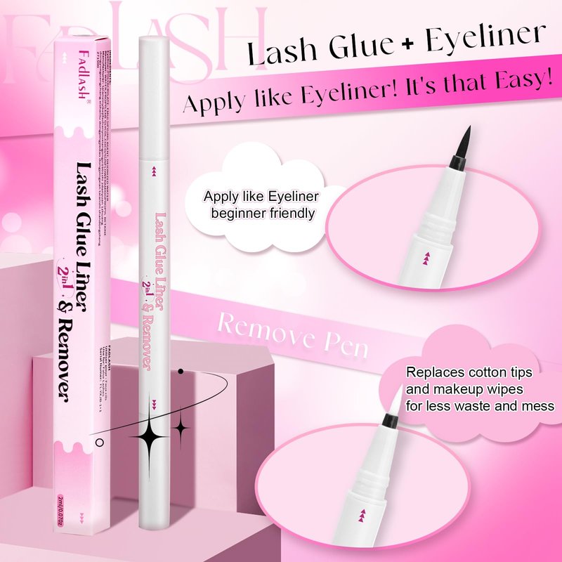 FADLASH 2-in-1 Lash Glue Liner and Remover Eyeliner Lash-Enhancing Eyelash Adhesive Eyeliner Waterproof Makeup Eyeliner Instead of Lash Glue Easy Touch-Up