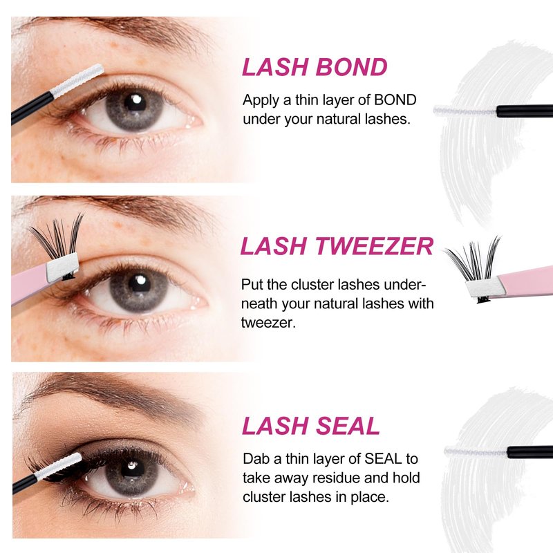 The lash bond and seal is waterproof and skin-friendly, making the cluster lashes can remain firm for up to 48 hours. The tweezer is made of premium stainless steel, and the great grip makes grabbing the lashes easier. Specification: