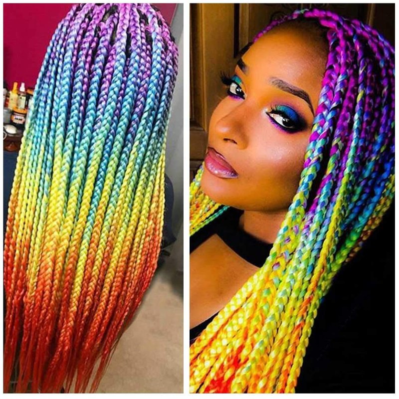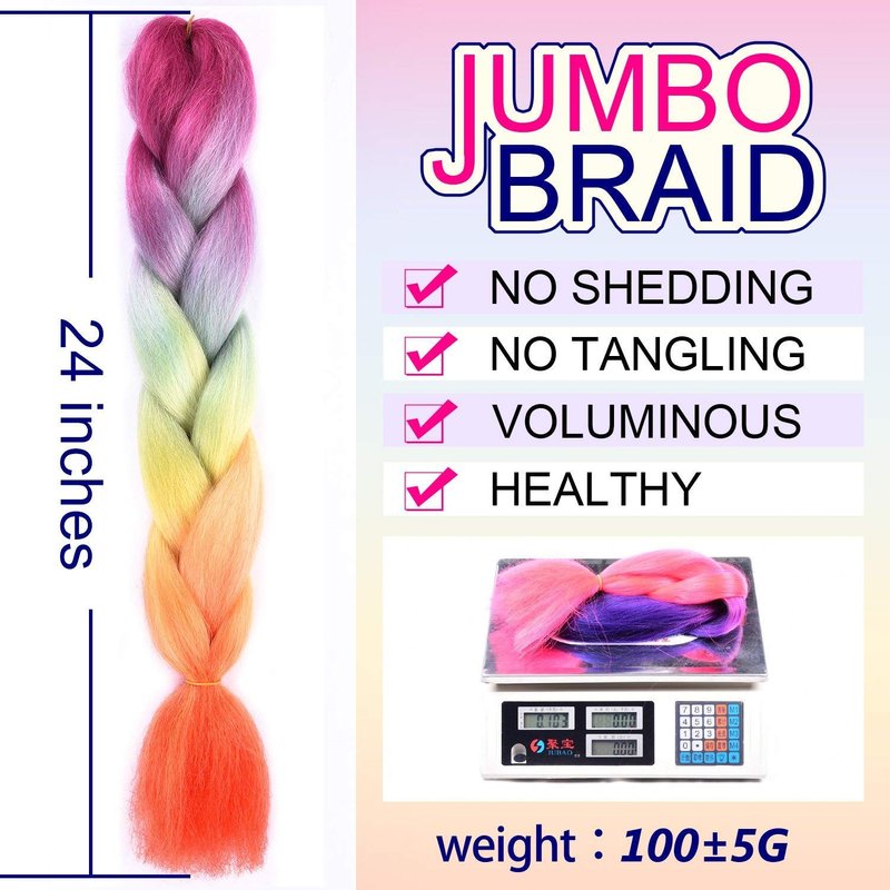 FAELBATY Synthetic Braiding Hair Extensions Rainbow Jumbo Braid for Twist Braiding Hair Extensions 24inch 3Pcs/Lot(Rainbow color)