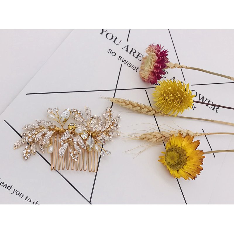 • Material: Rhinestones, Brilliant pearls, Gold wire, Alloy