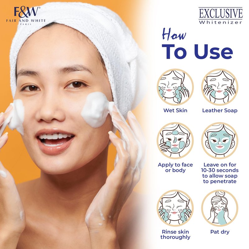 Fair and White Exclusive Exfoliating Soap - 7 oz / 200 g - Skin Brightening Bar, Moisturizing Soap for Uneven Skin Tone, with Vitamin C and Shea Butter
