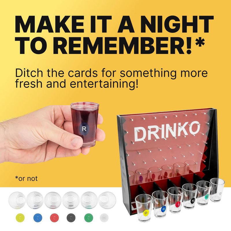 - Revamped Classic Fun: DRINKO by Fairly Odd Novelties breathes new life into a beloved TV game show classic, transforming it into the ultimate party drinking game. Perfect for groups up to six, it's a fresh twist on party entertainment!