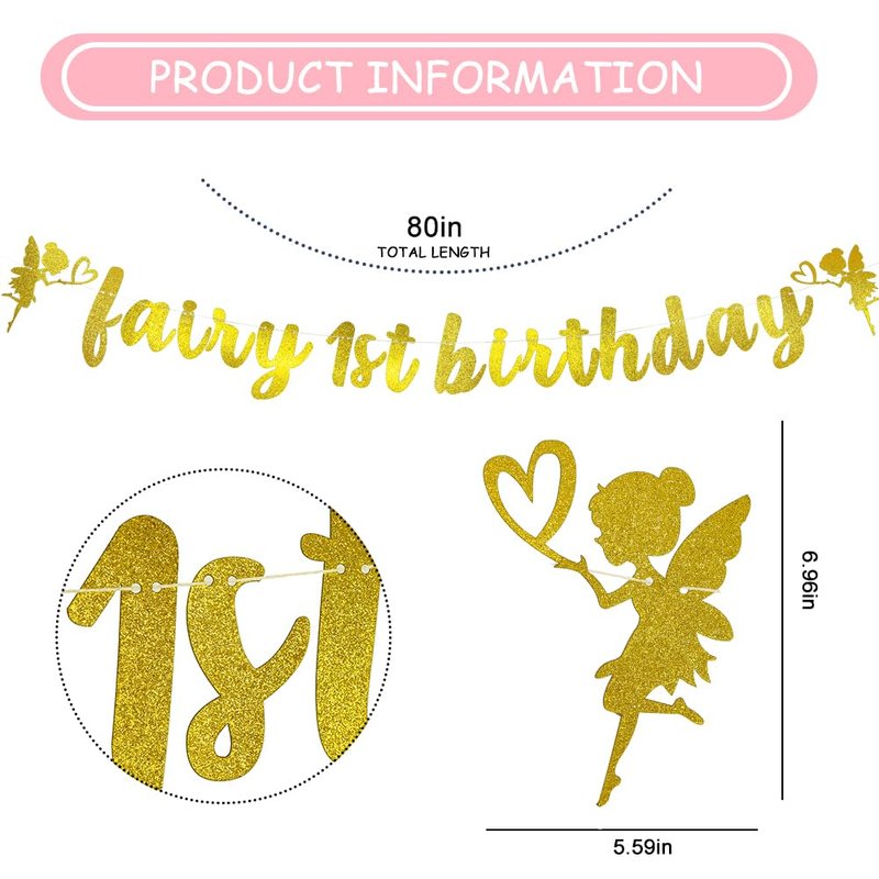 - 1.What will you get? 1 sparkling fairy banner.Looking for more Tea party decoration? This Golden glittery fairy banner is an ideal wall decoration for birthday celebrations.This will be another milestone moment, looking forward to a better future.We hope to bring something to your child's growth to make every momen unforgettable.Cherish this moment forever!