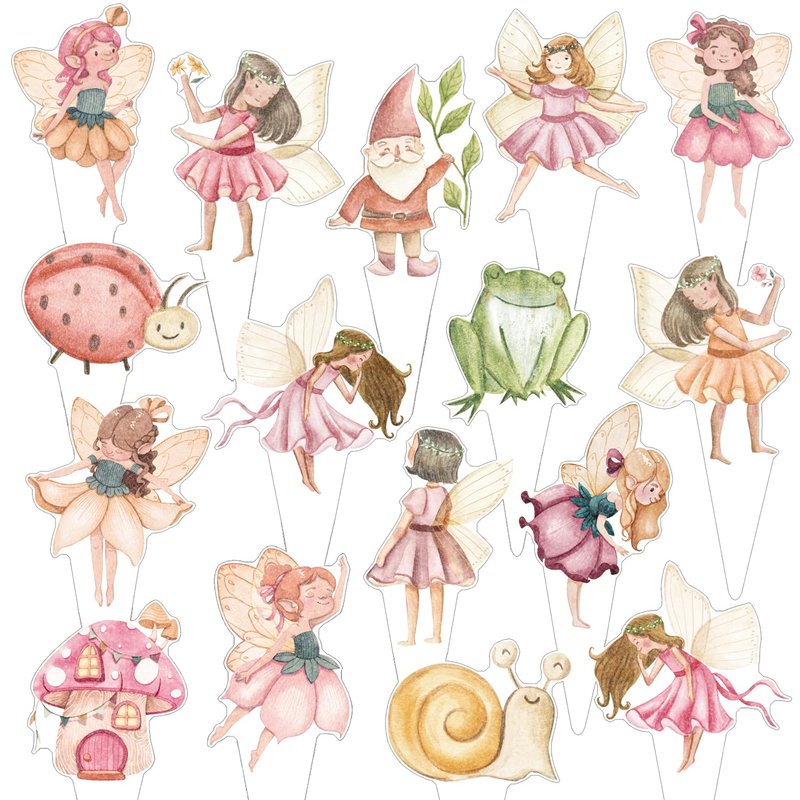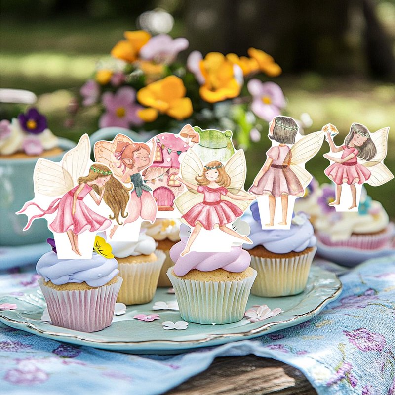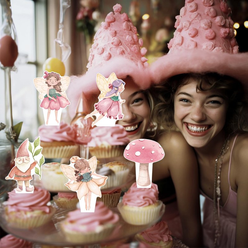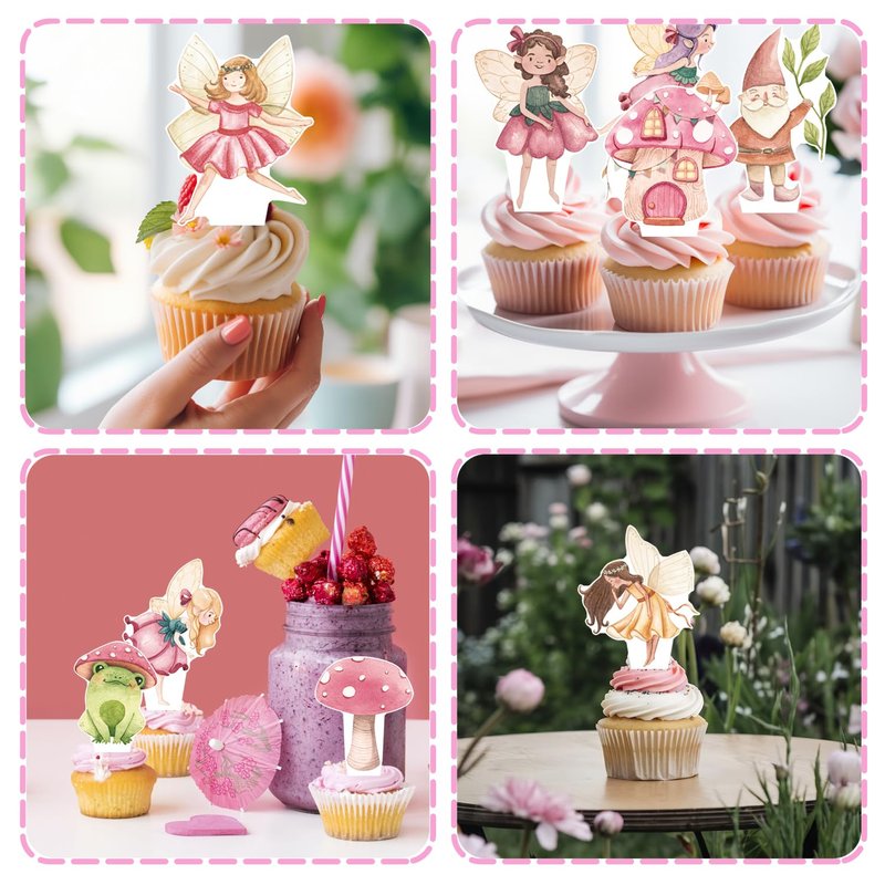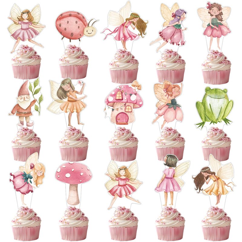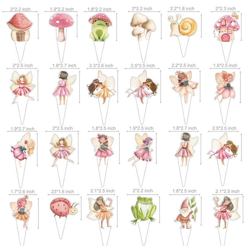 - 24 Unique elements:There are 24 flower fairy themed pattern designs in this fairies cake decoration, including different style fairies, mushroom, frog, elf, snail, etc. Bringing you a fairytale feeling