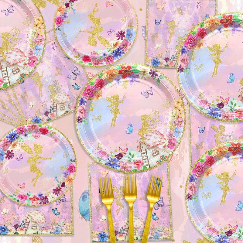 - Save Your Time - Our fairy decor saves you clean-up time. Simply throw away the food scraps along with the dinnerware set when you're done, saving you time and energy to enjoy the birthday party!