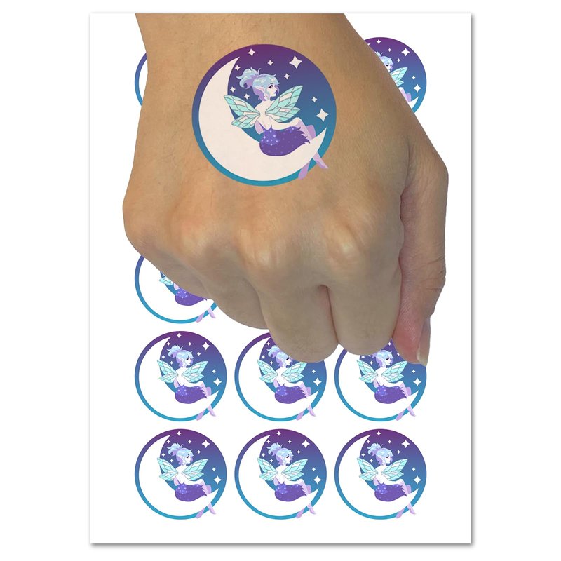 Fairy With Butterfly Wings Sitting on Moon Fantasy Temporary Tattoo Water Resistant Fake Body Art Set Collection - 15 2" Tattoos (1 Sheet)