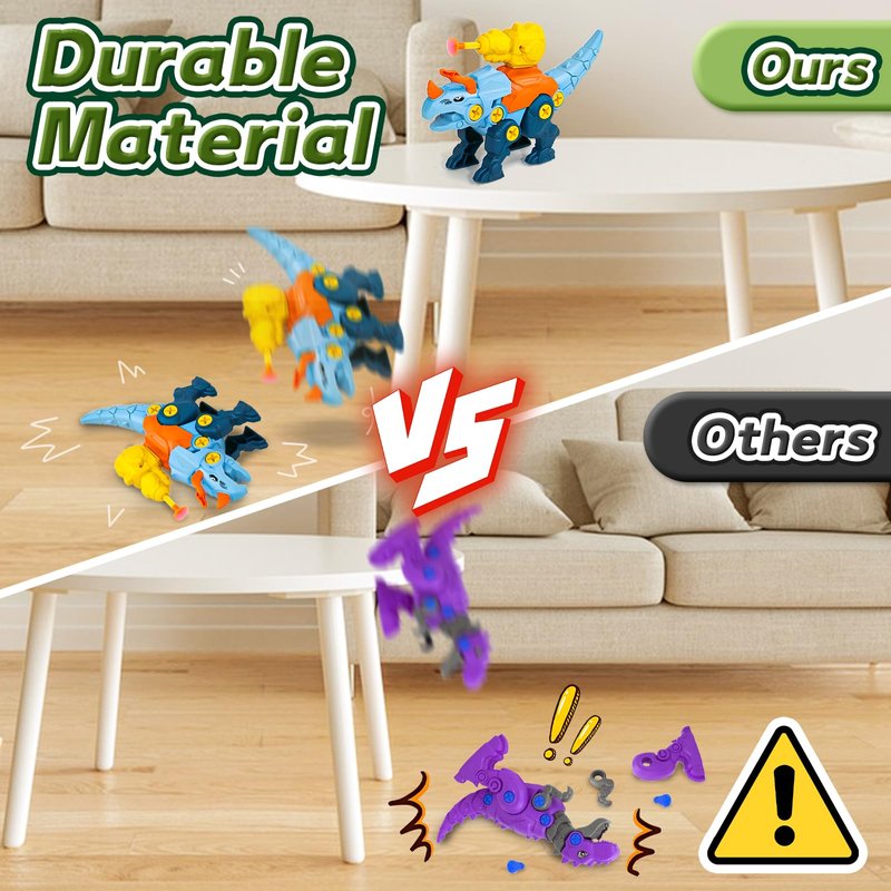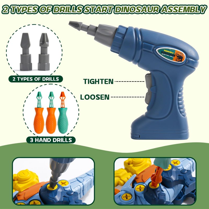- Safe and Sturdy Building Toys: The dinosaur toys for kids 3-5 is made of great quality strong and durable plastic. This take apart toys for boys dinosaur building kit set comes with both manual, electric screwdrivers and real screwdrivers in a variety of options, so your child can choose the right tool for assembly. When encountering obstacles, the electric drill toy will automatically stop to prevent harm to your child. (Requires 2 AA batteries, not included in product)