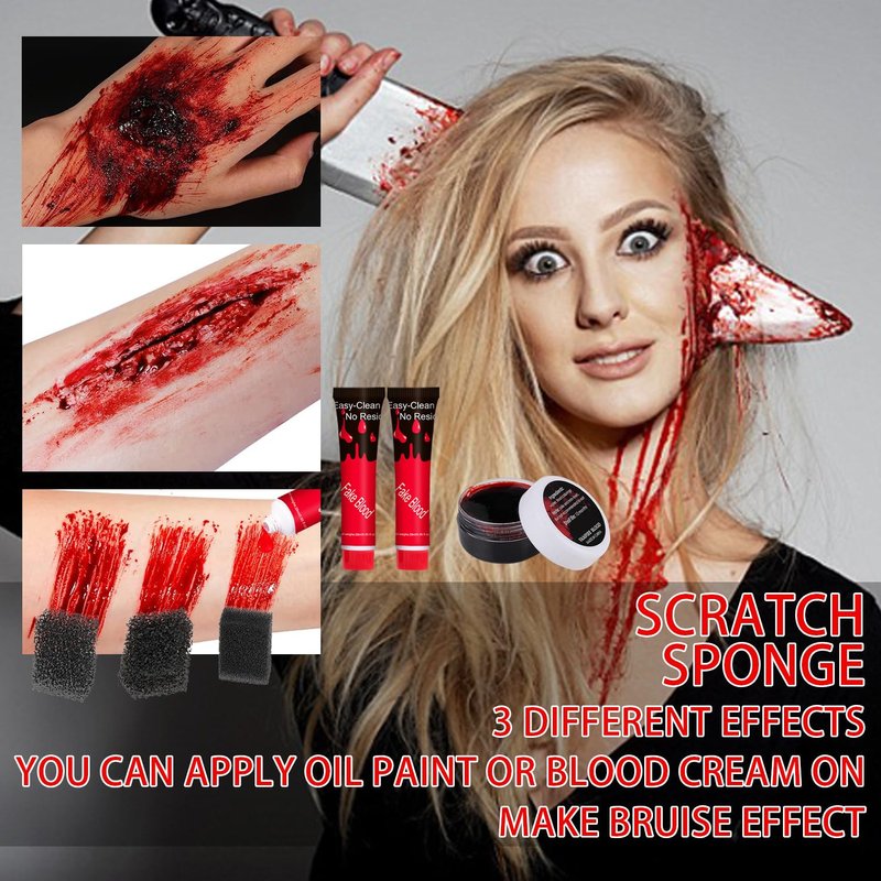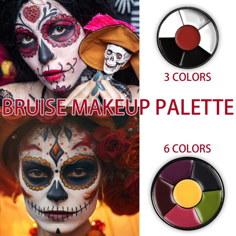 - Complete Halloween Makeup Kit - Meet your various makeup needs for Halloween, including 6 colors bruise makeup palette, scar wax with double ended spatula tool, fake blood cream.