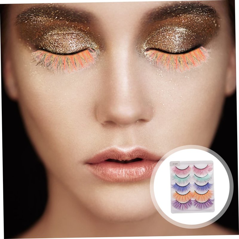 Fake Eyelash 5 Pairs Colored es Natural Fake Lashes es Magnetic Fluffy Natural Eyelashes False Lashes Synthetic Fiber Eyelash Fake Lash Extensions Fake Lash 3d