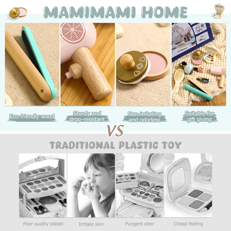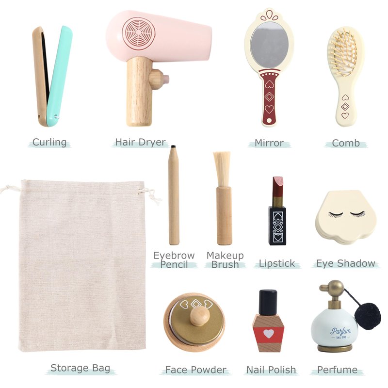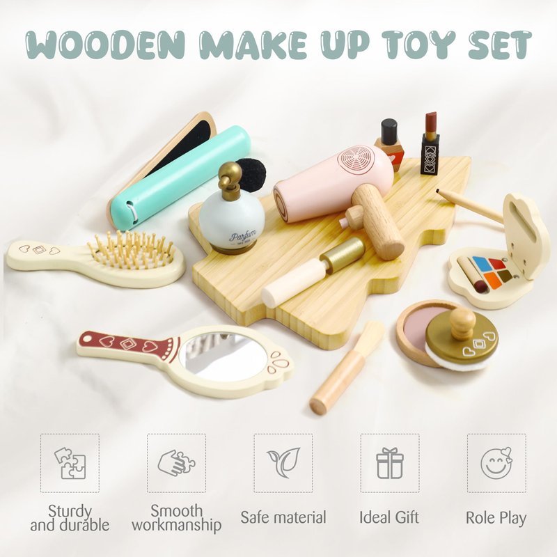 - Durable & Long-Lasting: Unlike plastic toys that can easily break or wear down, this wooden makeup toy set is built to last. Its sturdy construction ensures it can withstand the rigors of playtime, providing hours of entertainment for years to come.